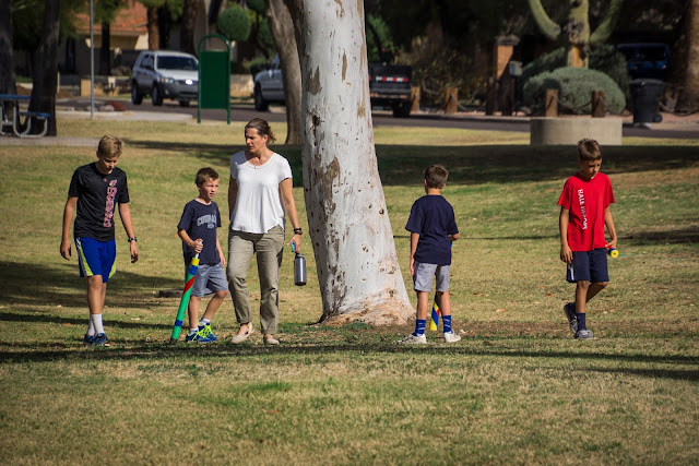 They boys in our neighborhood run in a pack and there's very little distinction by age, which I love. I tried to split the big boys up between the two teams, and then they all battled for dominance.